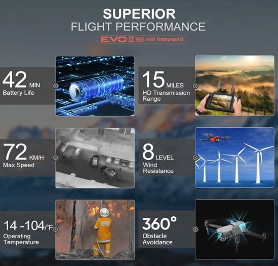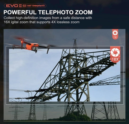 Autel Robotics EVO II Dual 640T Enterprise V3, Support Remote ID, 640 * 512@30 fps Thermal Imaging, 0.8" RYYB CMOS 8K Sensor, DRI Ranges, 1-16x Zoom, 42 Mins,15KM Transmission