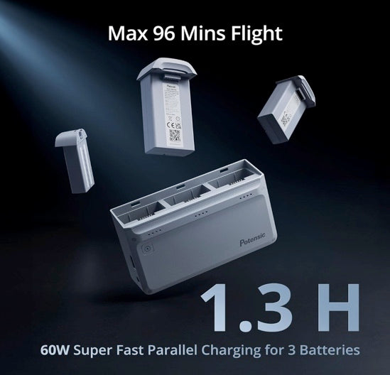 Total Flight Time (3 Batteries): Up to 96 minutes
